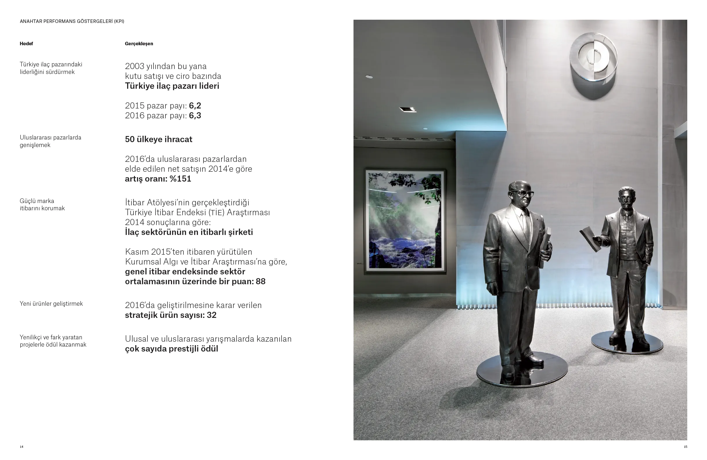 Doğduğu topraklara olan borcunu yatırımla, üretimle, ihracatla ve istihdamla ödeme arzusunu ortaya koyan Abdi İbrahim; Türk ilaç sektörünün potansiyeline, ülkemizin gücüne ve geleceğine inanarak yatırımlarını aralıksız sürdürüyor. 1912’de başlayan “iyileştirme” yolculuğunu, uluslararası pazarlarda da hızla yükselen bir değer olarak geleceğe taşımaya devam eden Abdi İbrahim’in, 2015-2016 dönemini kapsayan Sürdürülebilirlik Raporu, “Türkiye’nin iyileştiren gücü” başlığıyla yayınlandı.