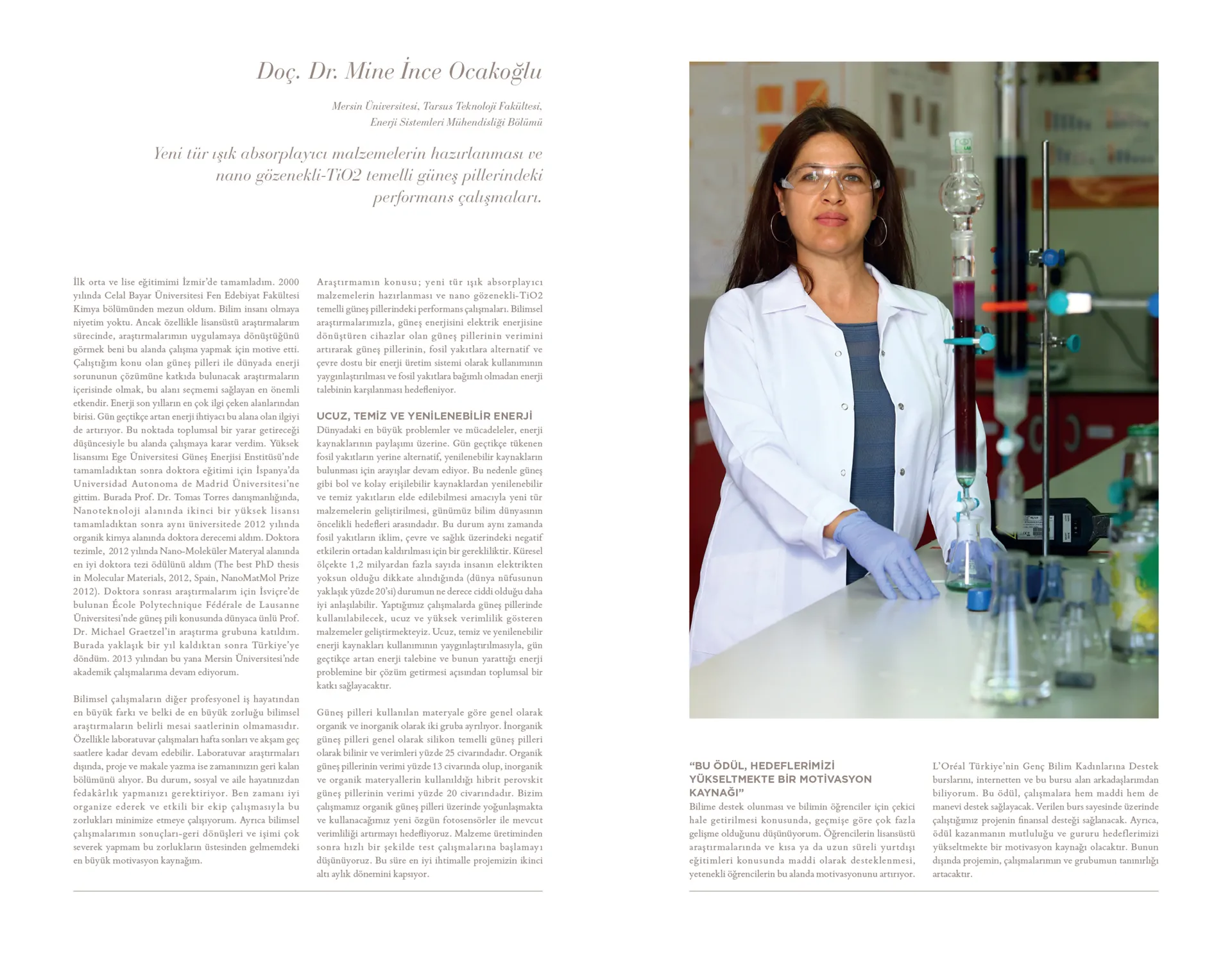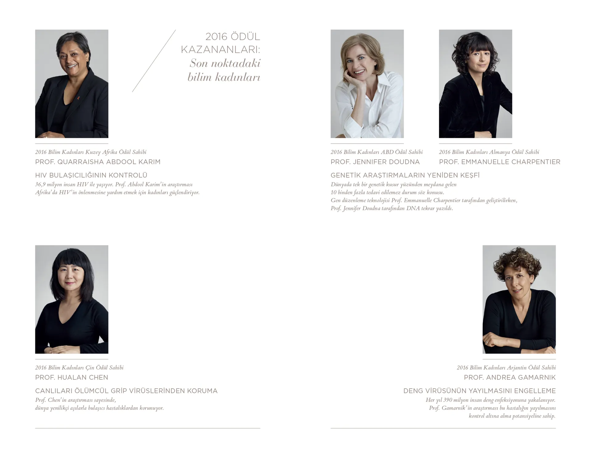 L'Oréal-UNESCO “Bilim Kadınları İçin” raporunda, program ve yarışmayla ilgili bilgi ve değerlendirmelerin yanı sıra ödül kazananların söyleşilerine yer verildi.