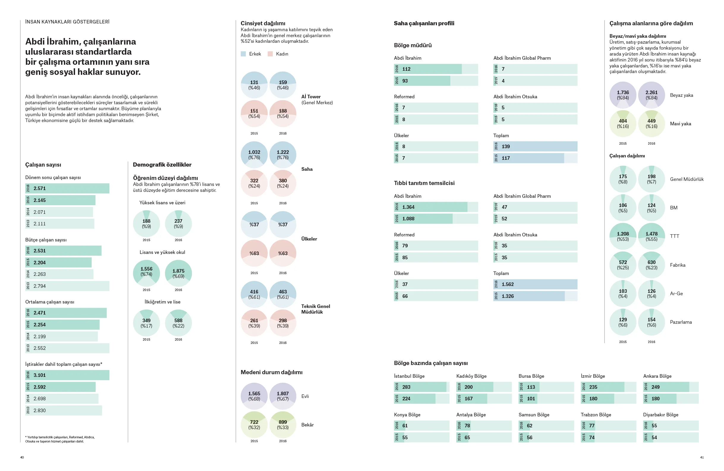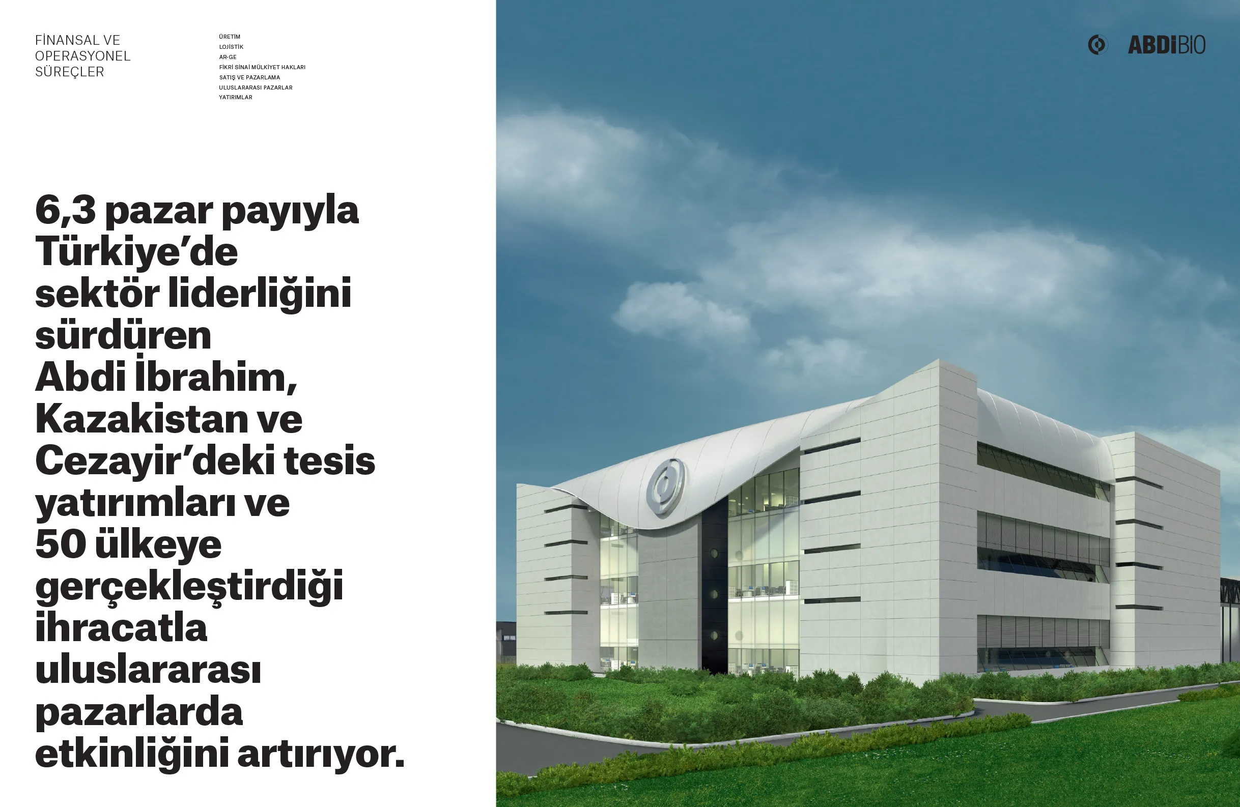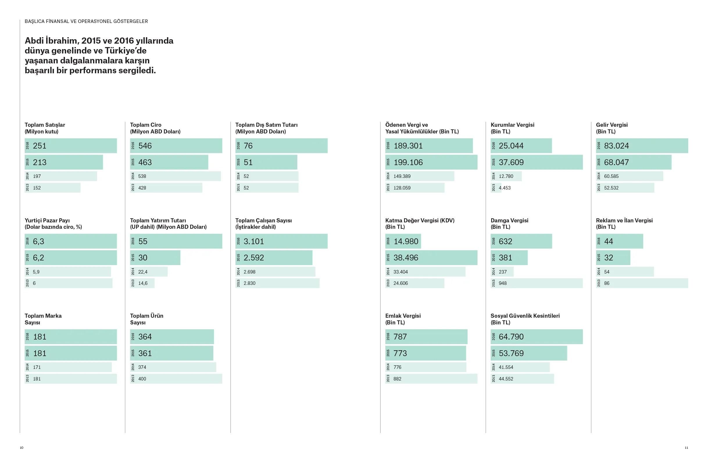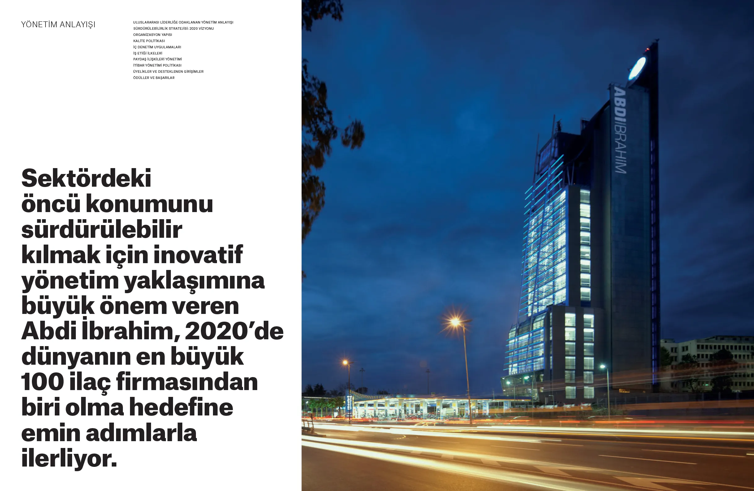 Doğduğu topraklara olan borcunu yatırımla, üretimle, ihracatla ve istihdamla ödeme arzusunu ortaya koyan Abdi İbrahim; Türk ilaç sektörünün potansiyeline, ülkemizin gücüne ve geleceğine inanarak yatırımlarını aralıksız sürdürüyor. 1912’de başlayan “iyileştirme” yolculuğunu, uluslararası pazarlarda da hızla yükselen bir değer olarak geleceğe taşımaya devam eden Abdi İbrahim’in, 2015-2016 dönemini kapsayan Sürdürülebilirlik Raporu, “Türkiye’nin iyileştiren gücü” başlığıyla yayınlandı.