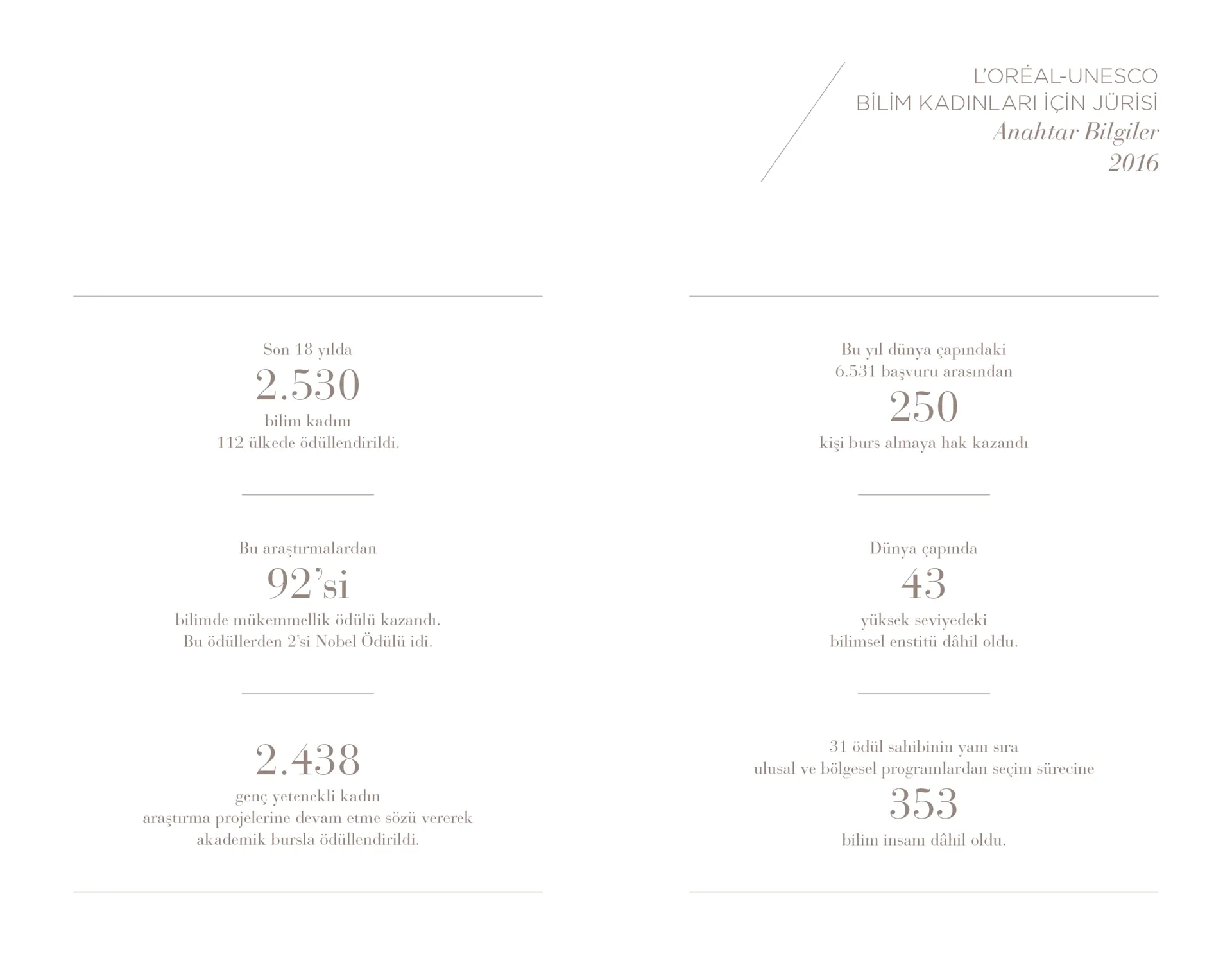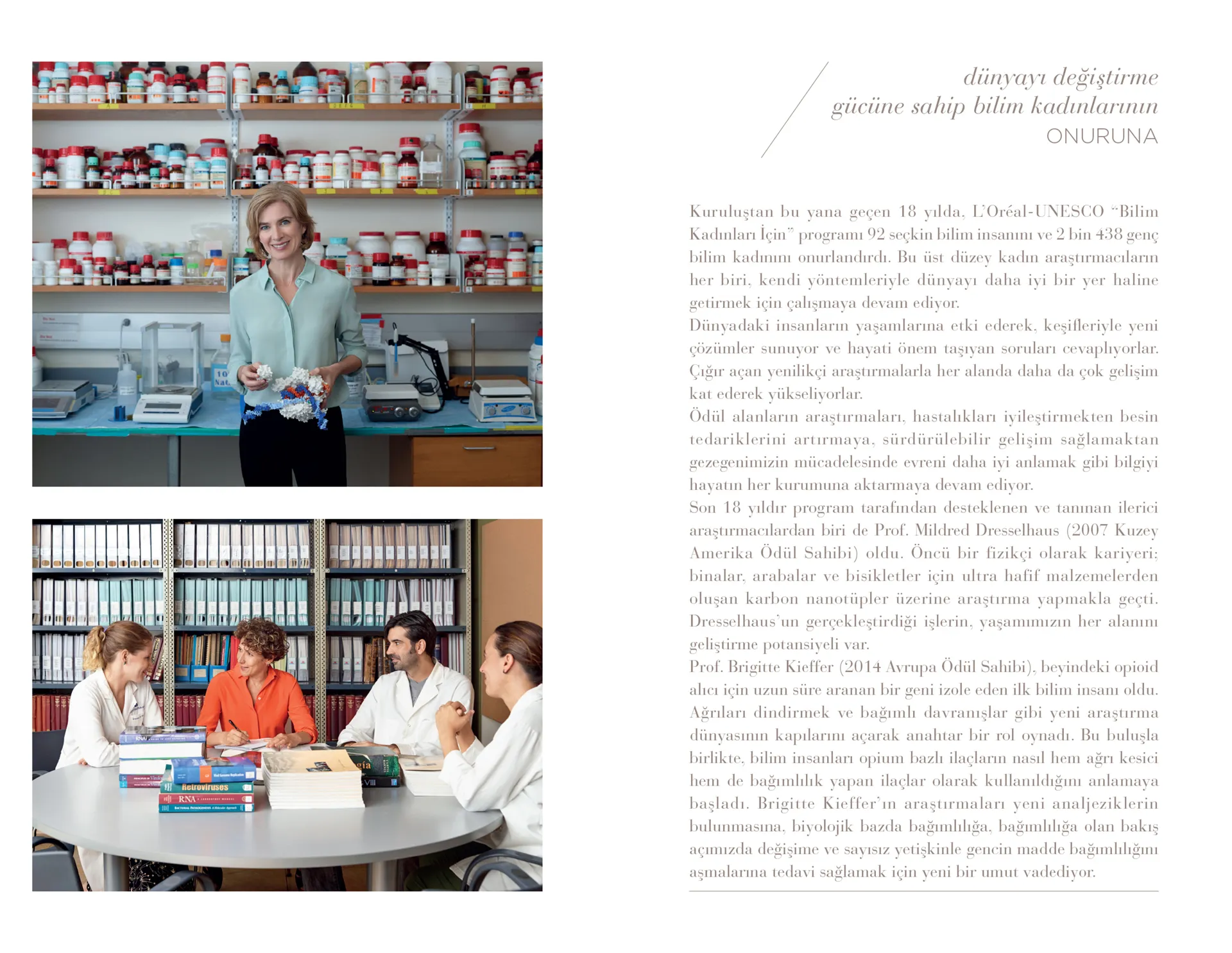 L'Oréal-UNESCO “Bilim Kadınları İçin” raporunda, program ve yarışmayla ilgili bilgi ve değerlendirmelerin yanı sıra ödül kazananların söyleşilerine yer verildi.